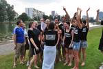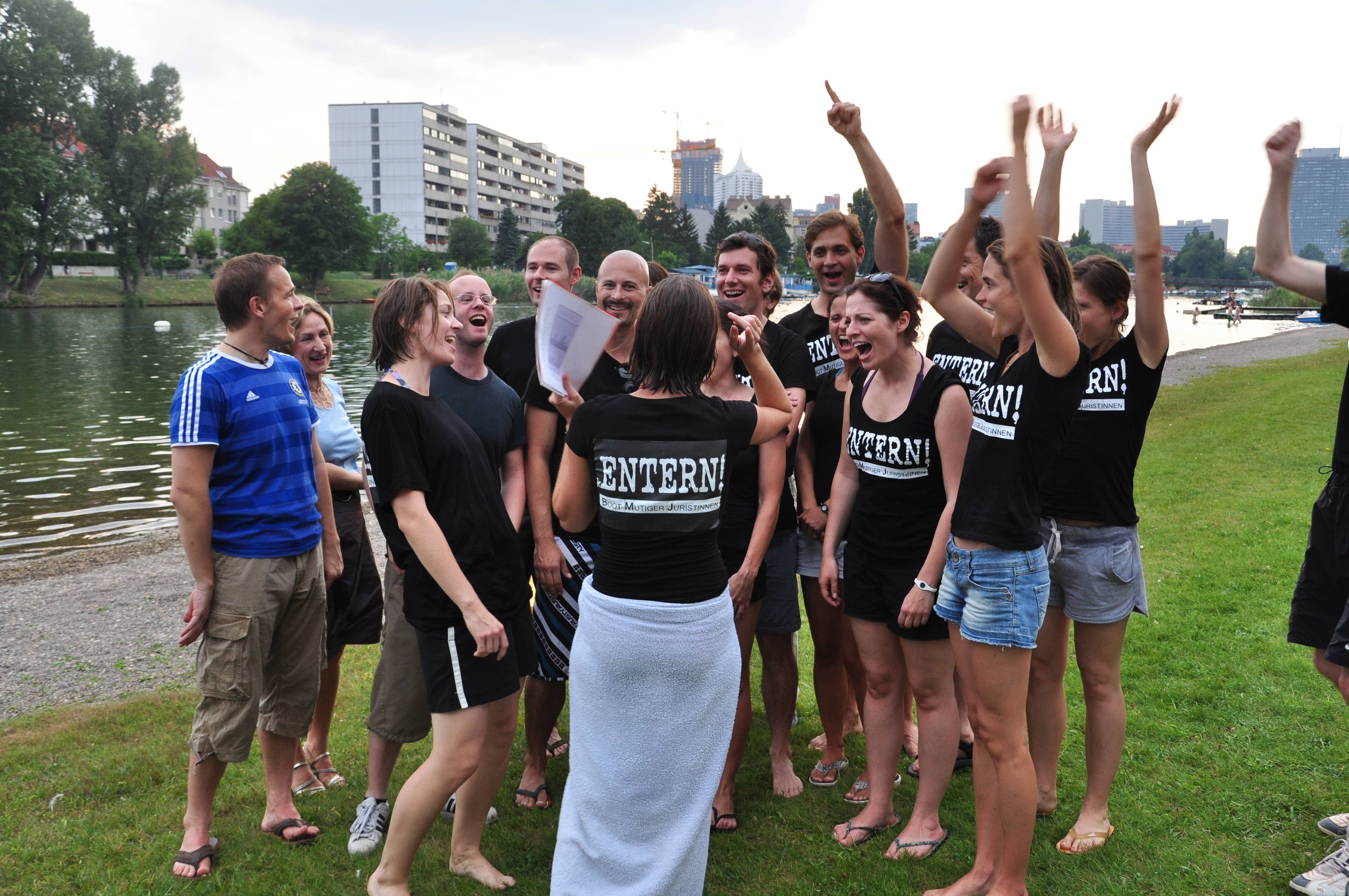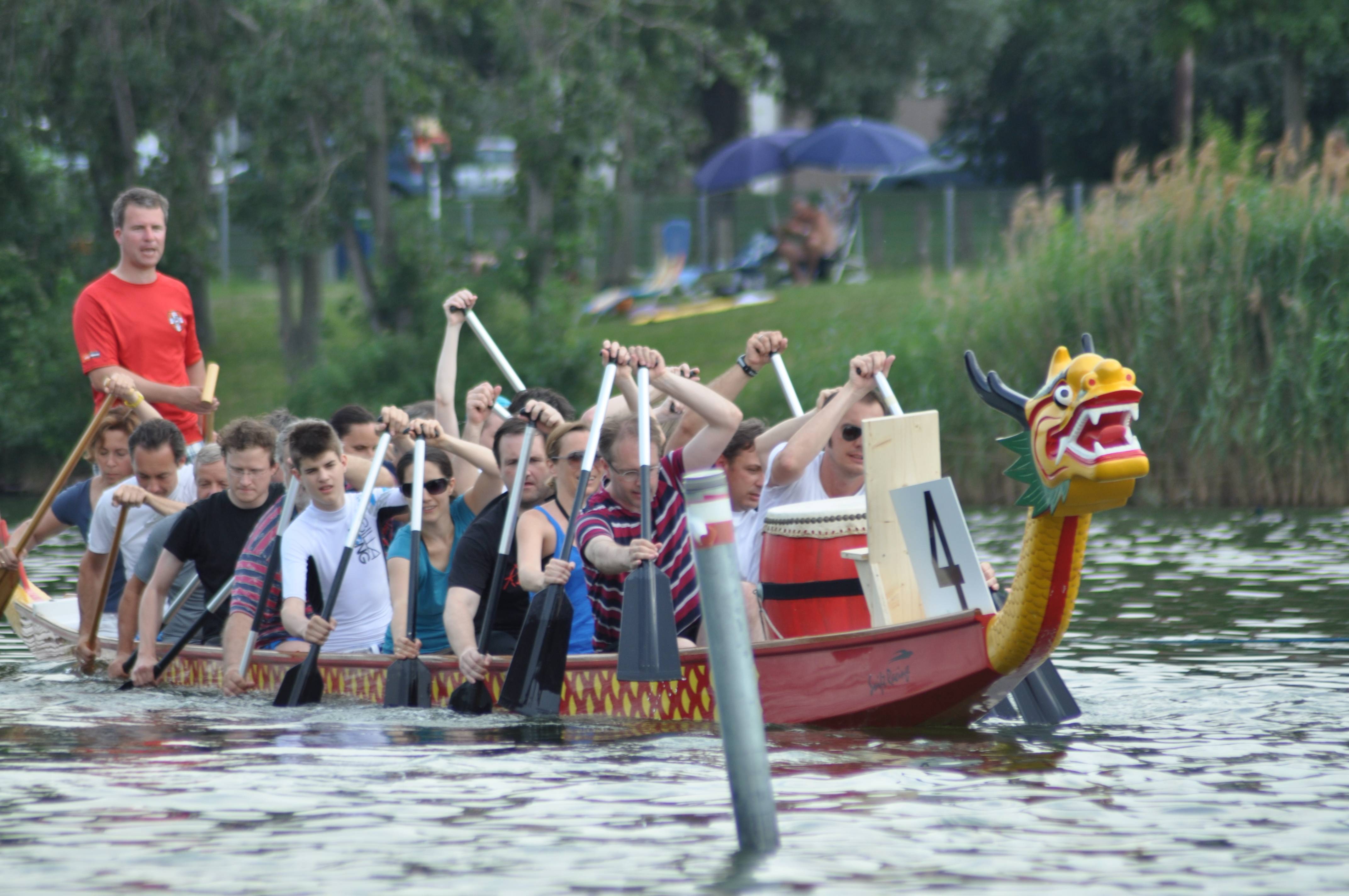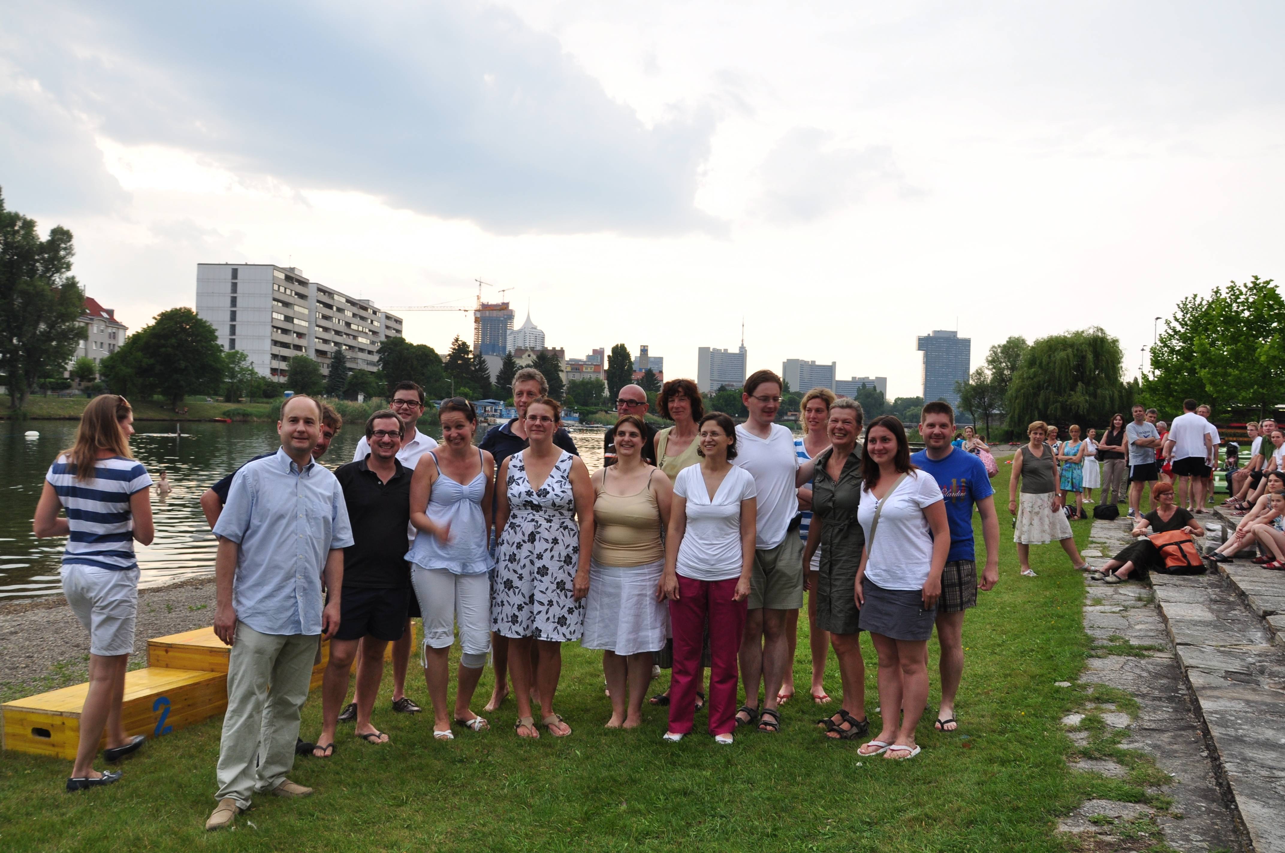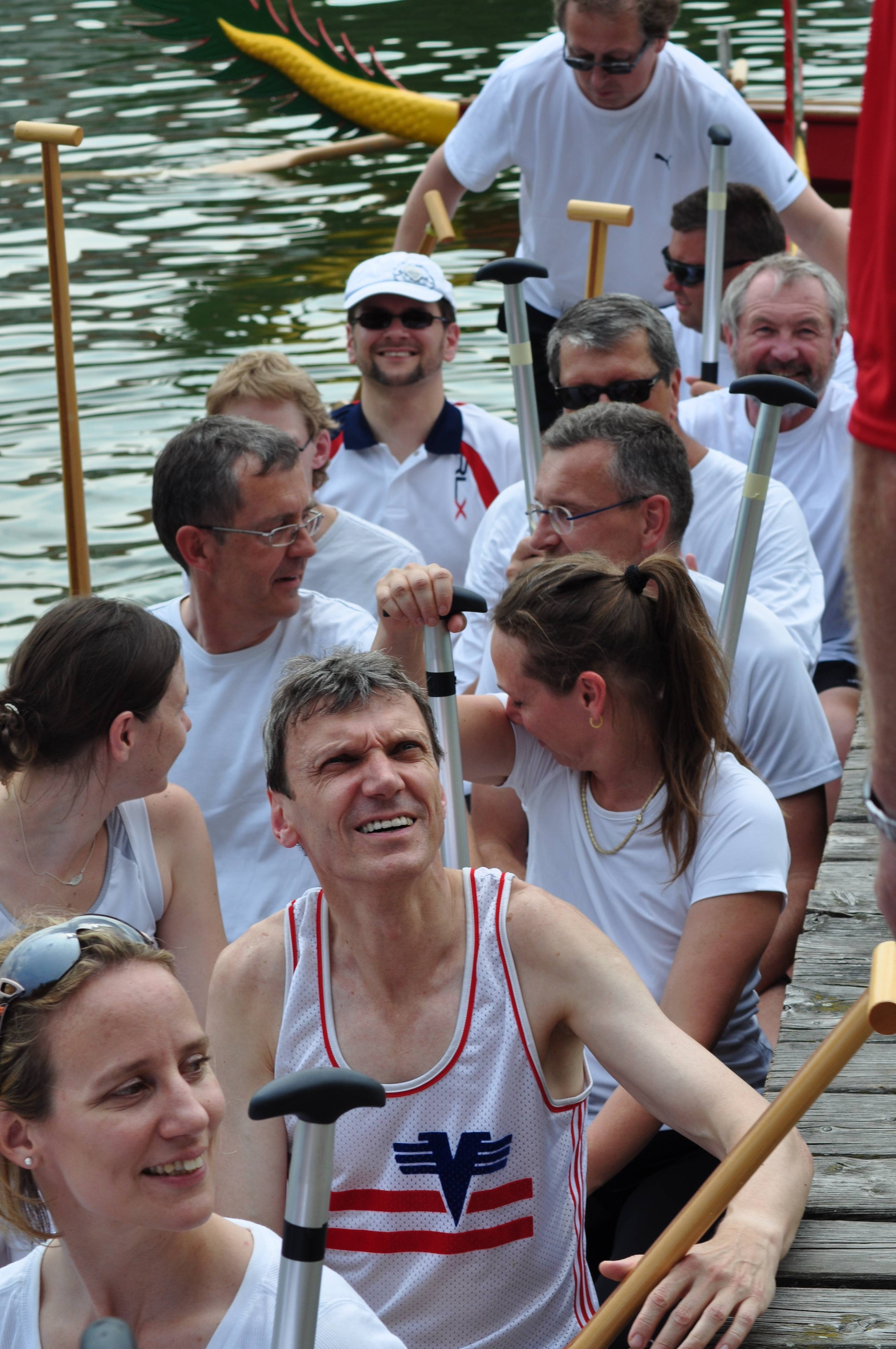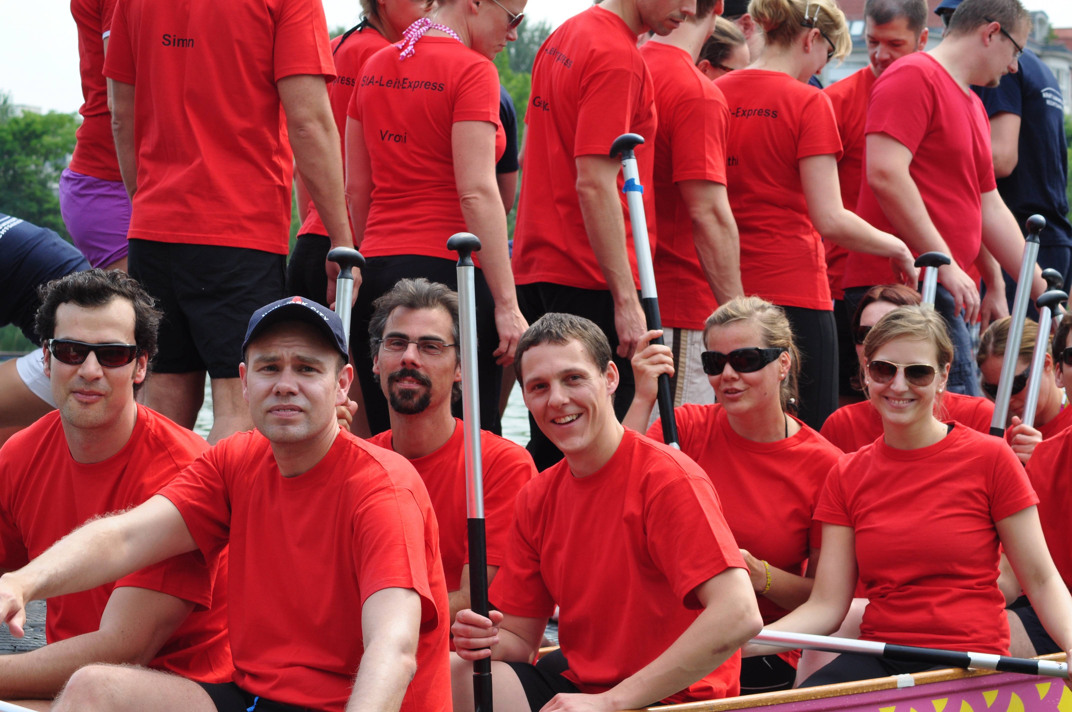 Die Finalisten des Drachenbootrennens am 20. Juni 2012 standen nach 9 Qualifikationsläufen fest. Den ersten Platz erreichte das Boot mit den Richterinnen und Richtern des Verwaltungsgerichtshofs. Sie nützten die Chance des „Hoffnungslaufs“, um sich für das Finale zu qualifizieren, bei dem vier Boote starteten, und waren dann als erste im Ziel – dicht gefolgt vom Boot der „Taktlosen“, besetzt mit Richterinnen und Richtern des Oberlandesgerichts Wien und des Landesgerichts für Strafsachen Wien! Sie hielten den Takt bis zum Schluss durch und hängten das Boot „Oberster Gerichtshof / Generalprokuratur / Evidenzbüro“ (4. Platz) sowie die Anwaltskanzlei Kraft & Winternitz (Vorjahressieger, heuer 3. Platz) ab.  Das Siegerboot - VwGH Am Rennen nahmen 18 Mannschaften teil; vertreten waren nicht nur jede Menge Justizboote (inkl. Bundesministerium für Justiz und Staatsanwaltschaft Wien) und ein Boot des Asylgerichtshofs, sondern auch einige Anwaltskanzleien und ein Boot voller Notare.  Im Finale: ein Kampf um jeden Wassertropfen  Glückliche „Silberne“ Im ersten Durchgang traten alle Mannschaften in Vierergruppen an, wobei es auf die erreichte Zeit ankam. Die drei Schnellsten (Kraft & Winternitz; OGH/Generalprokuratur/Evidenzbüro; OLG/LGSt) waren für das Finale qualifiziert. Die verbleibenden 16 Teams kämpften in der Zwischenrunde um den vierten Finalistenplatz, den sich der VwGH äußerst knapp vor dem Boot des BMJ sicherte. Im Finale hatten die Kolleginnen und Kollegen vom VwGH noch ausreichend Reserven, um einen unangefochtenen Sieg davonzupaddeln (was bewundernd – wenn auch widerwillig – anerkannt werden muss ...). Professionell organisiert hat das Rennen die Polizeisportvereinigung Wien, die nicht nur die Boote bereitstellte, sondern auch die Rennleitung übernahm und die Zeitnehmung mit einer Zielkamera jedem Zweifel entzog – vielen Dank!  Hochspannung unter den Zuschauern Besonderer Dank gilt auch der GÖD für das Sponsoring sowie der Sektion Wien der Vereinigung der österreichischen Richterinnen und Richter, die dieses sportliche Großereignis (knapp 400 Athletinnen und Athleten!) und das nachfolgende Sommerfest organisierte – vor allem in Person von Martina Erlebach und Sabine Matejka!