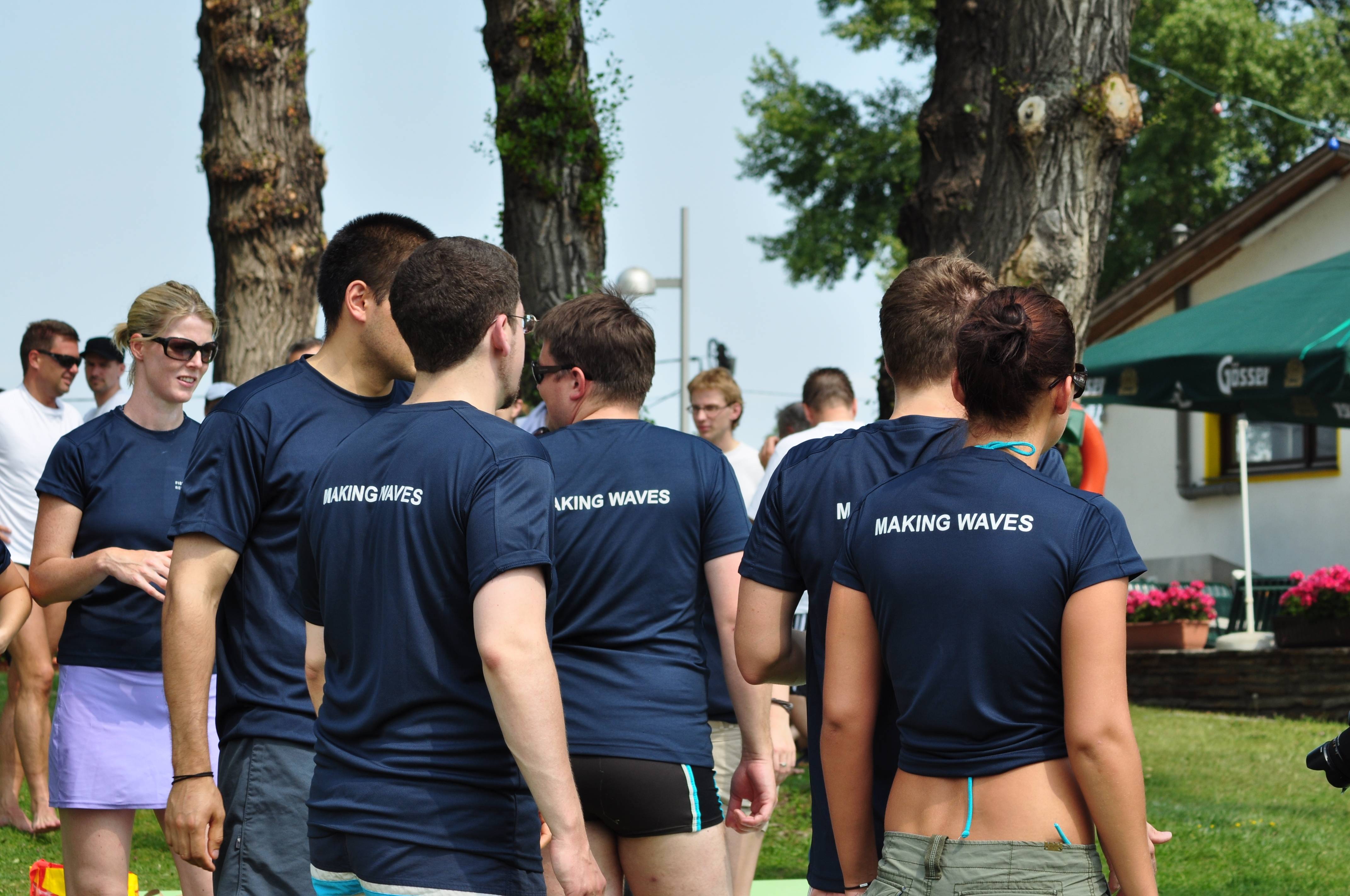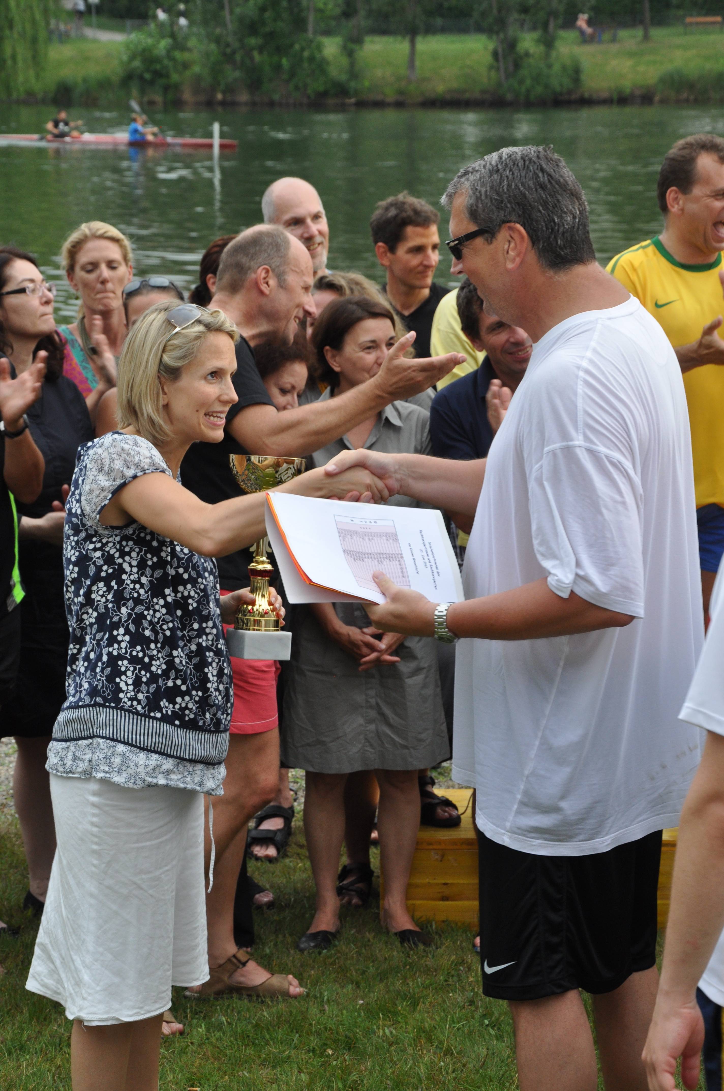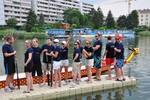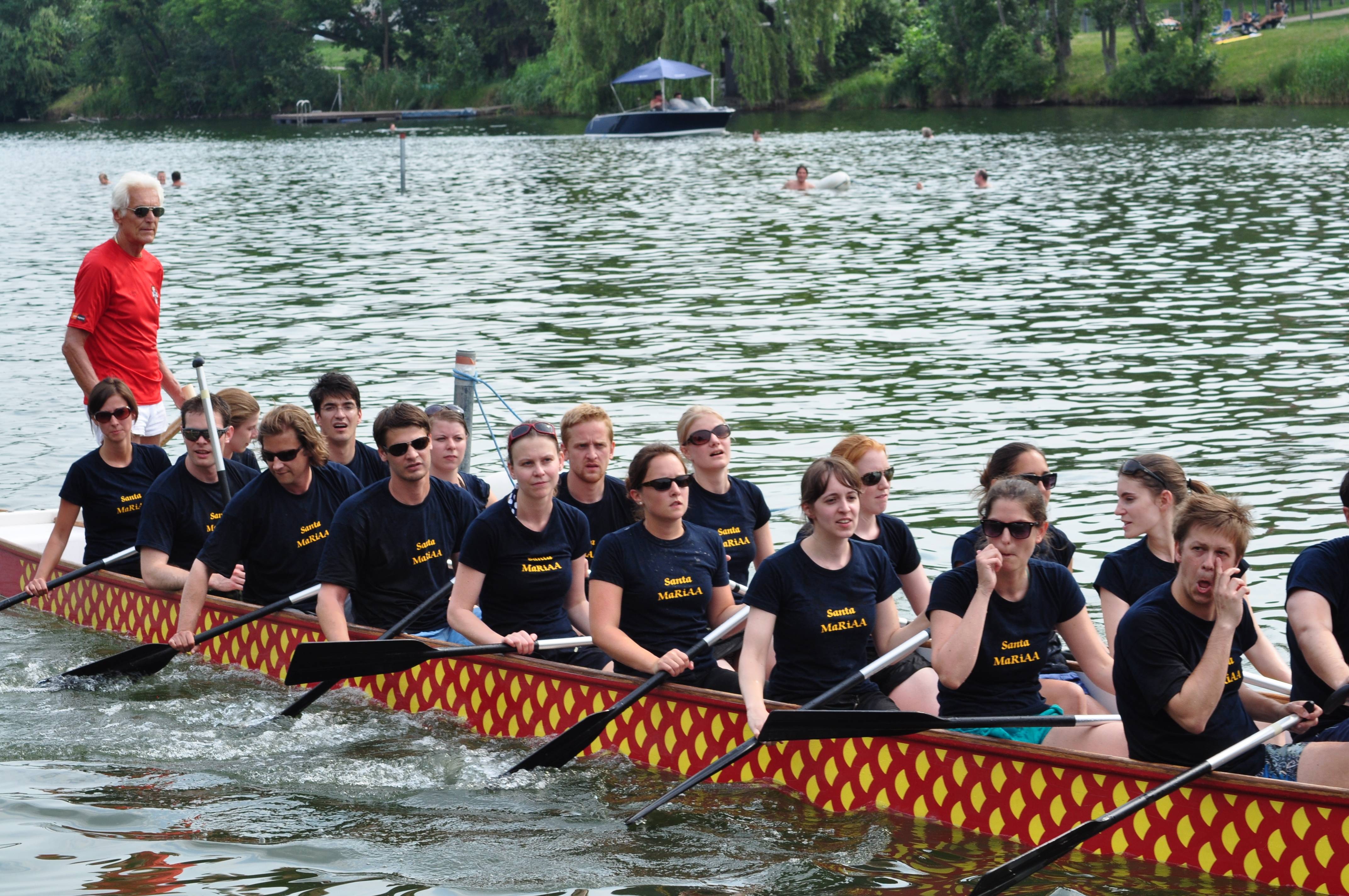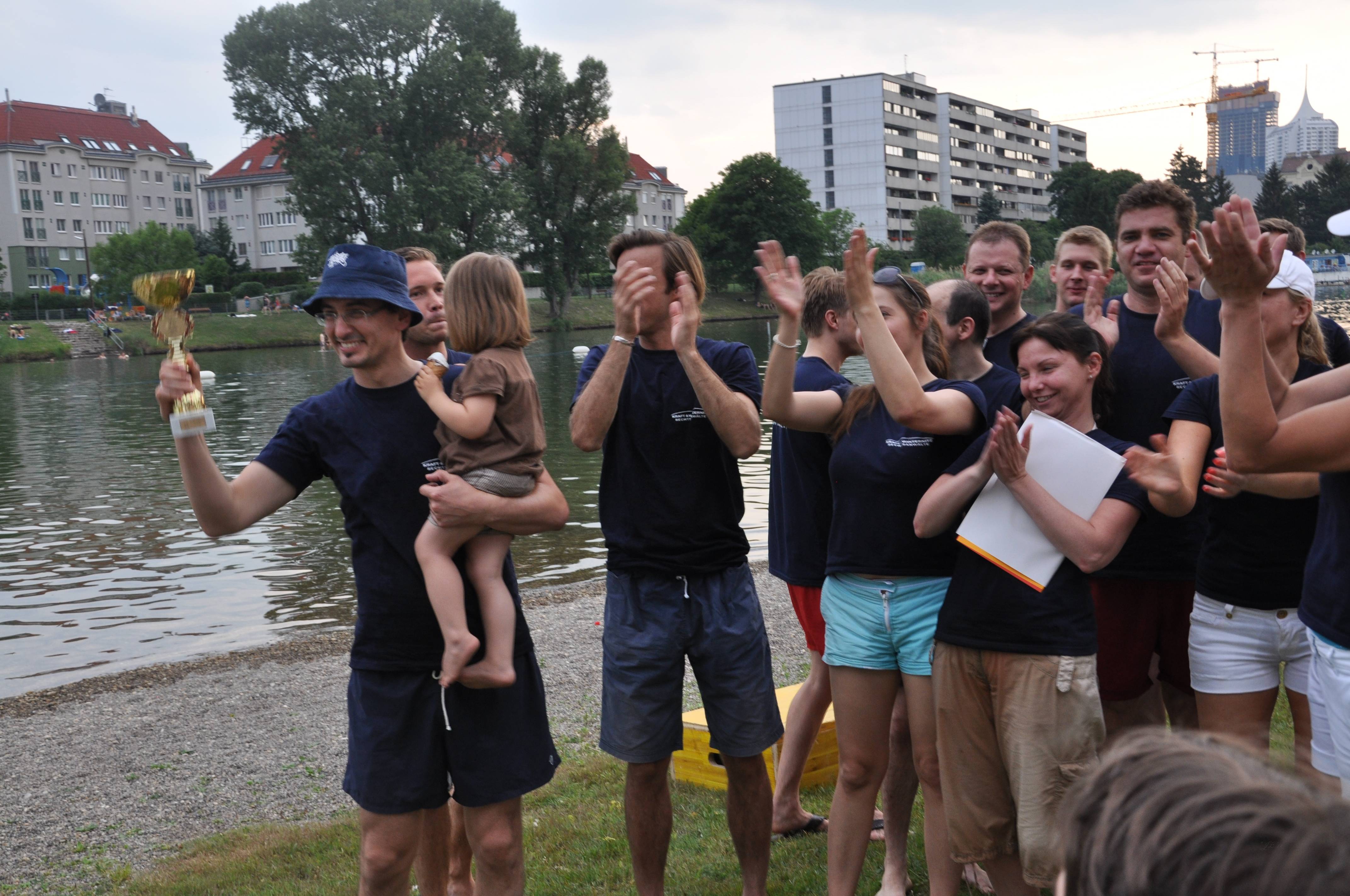 Die Finalisten des Drachenbootrennens am 20. Juni 2012 standen nach 9 Qualifikationsläufen fest. Den ersten Platz erreichte das Boot mit den Richterinnen und Richtern des Verwaltungsgerichtshofs. Sie nützten die Chance des „Hoffnungslaufs“, um sich für das Finale zu qualifizieren, bei dem vier Boote starteten, und waren dann als erste im Ziel – dicht gefolgt vom Boot der „Taktlosen“, besetzt mit Richterinnen und Richtern des Oberlandesgerichts Wien und des Landesgerichts für Strafsachen Wien! Sie hielten den Takt bis zum Schluss durch und hängten das Boot „Oberster Gerichtshof / Generalprokuratur / Evidenzbüro“ (4. Platz) sowie die Anwaltskanzlei Kraft & Winternitz (Vorjahressieger, heuer 3. Platz) ab.  Das Siegerboot - VwGH Am Rennen nahmen 18 Mannschaften teil; vertreten waren nicht nur jede Menge Justizboote (inkl. Bundesministerium für Justiz und Staatsanwaltschaft Wien) und ein Boot des Asylgerichtshofs, sondern auch einige Anwaltskanzleien und ein Boot voller Notare.  Im Finale: ein Kampf um jeden Wassertropfen  Glückliche „Silberne“ Im ersten Durchgang traten alle Mannschaften in Vierergruppen an, wobei es auf die erreichte Zeit ankam. Die drei Schnellsten (Kraft & Winternitz; OGH/Generalprokuratur/Evidenzbüro; OLG/LGSt) waren für das Finale qualifiziert. Die verbleibenden 16 Teams kämpften in der Zwischenrunde um den vierten Finalistenplatz, den sich der VwGH äußerst knapp vor dem Boot des BMJ sicherte. Im Finale hatten die Kolleginnen und Kollegen vom VwGH noch ausreichend Reserven, um einen unangefochtenen Sieg davonzupaddeln (was bewundernd – wenn auch widerwillig – anerkannt werden muss ...). Professionell organisiert hat das Rennen die Polizeisportvereinigung Wien, die nicht nur die Boote bereitstellte, sondern auch die Rennleitung übernahm und die Zeitnehmung mit einer Zielkamera jedem Zweifel entzog – vielen Dank!  Hochspannung unter den Zuschauern Besonderer Dank gilt auch der GÖD für das Sponsoring sowie der Sektion Wien der Vereinigung der österreichischen Richterinnen und Richter, die dieses sportliche Großereignis (knapp 400 Athletinnen und Athleten!) und das nachfolgende Sommerfest organisierte – vor allem in Person von Martina Erlebach und Sabine Matejka!